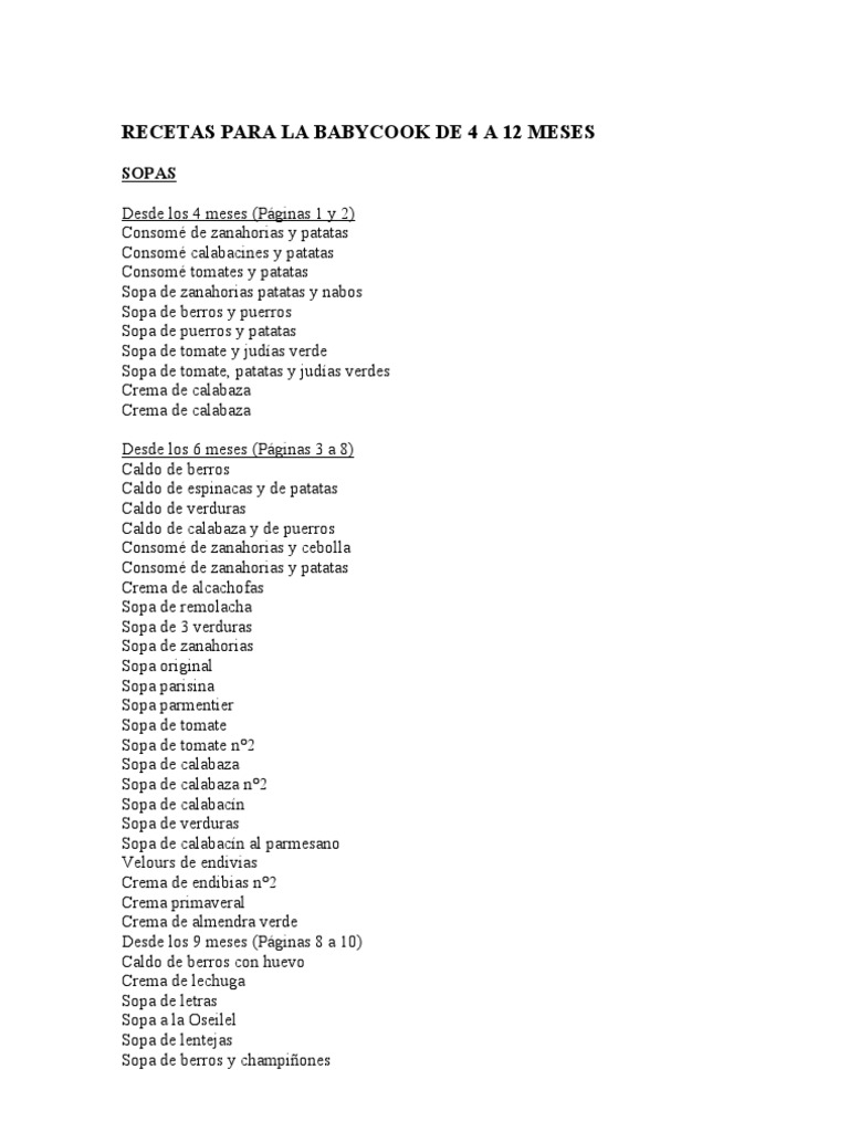 Recetas Para La Babycook De 4 A 12 Meses Pdf