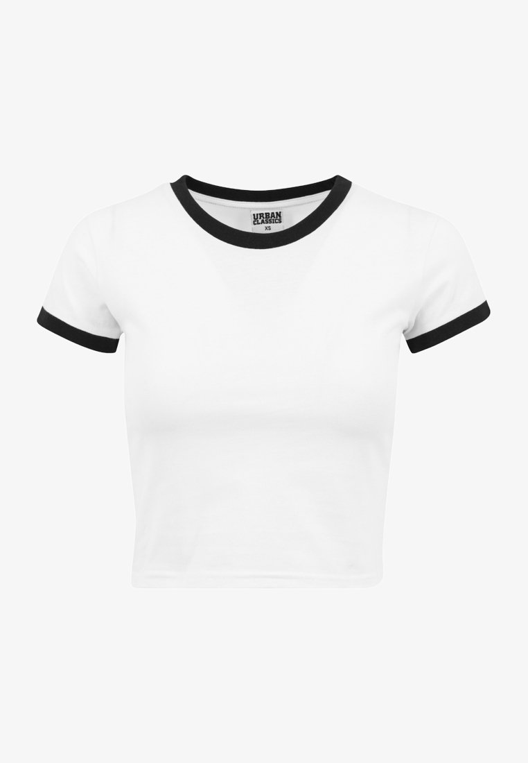 Urban Classics Ladies Cropped Ringer Tee T Shirt Print White Black Weiss Zalando De
